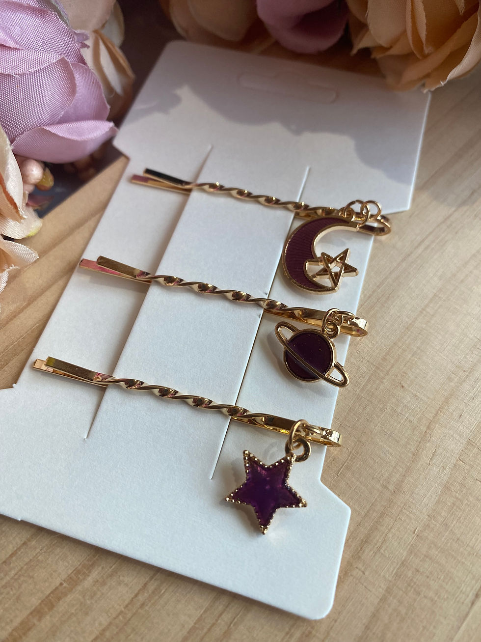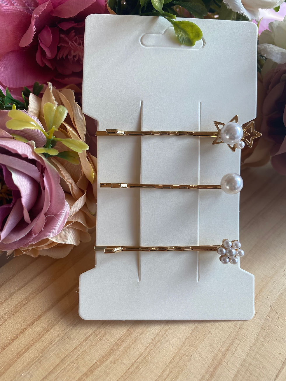 Our 3 pack of pins are all unique in design and style. A perfect add to any hair for any occasion or event.